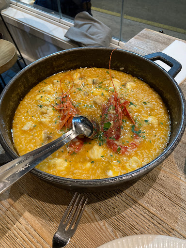 Español Cuando llegamos y nos pusieron la cesta de pan, ya sabíamos que habíamos acertado. Tienen un pan de pasas y nueces que está delicioso, es más como un bizcochito que pan, pero muy bueno. Nos decantamos por pedir un arroz con rape y carabineros que estaba realmente esquisito, el punto del arroz era perfecto, y el sabor que tenía increíble. Un acierto total. Sitio totalmente recomendable. ---- English When we arrived and they put the basket of bread, we knew we were in the right place. They have bread with raisins and nuts that's delicious, it's more like a sponge cake, but really good. We ordered rice with monkfish and red prawns that was exquisite, the rice was perfectly cooked, and the flavor was amazing. A complete success. I would most definitely recommend this place.