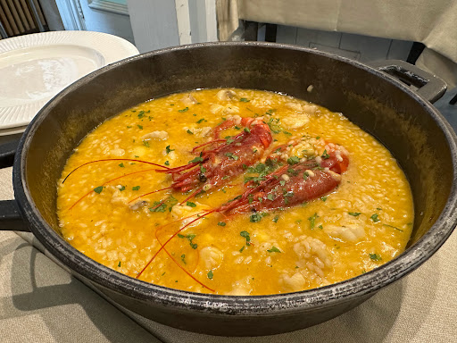 De los mejores sitios para cenar en Vigo que he probado hasta el momento. La cena fue sencilla. Arroz caldoso de rape y tarta de queso de postre. El arroz estaba muy bueno, con muchísimo sabor, y el rape estaba súper fresco, nada duro, nada agarrotado, simplemente perfecto. Para el postre yo tomé la tarta de queso, que como buen amante de ese postre tenía que probarla. Puedo decir que bastante bastante buena, de las mejores que he probado. Mi compañero se pidió la tarta de la abuela, que estaba buena también. El único fallo fueron los tiempos de espera, se les veía un poco saturados para ser un martes por la noche de un día laboral, espero que mejoren eso pronto. Pero la comida y las cantidades espectaculares.